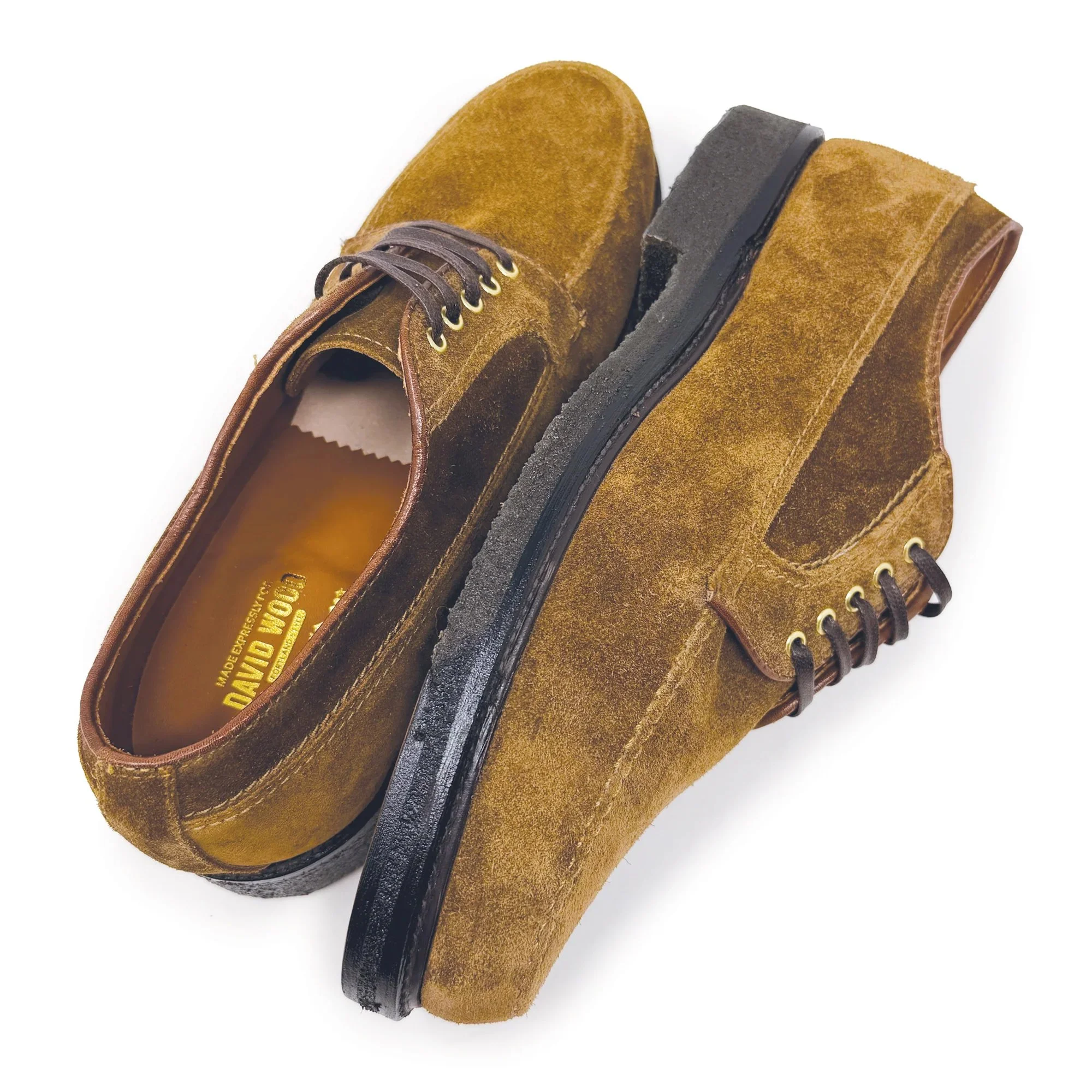 The Ellsworth by ALDEN x DW ranger mocc in snuff suede leather features a 270º storm welt with stitch around, mahogany edge, crepe sole, 5 brass eyes – and is handcrafted on the Van last. Made exclusively for David Wood, limited sizes and quantities are currently available in-store at 229 Commercial St. and online at DAVIDWOODSTYLESHOP.COM.