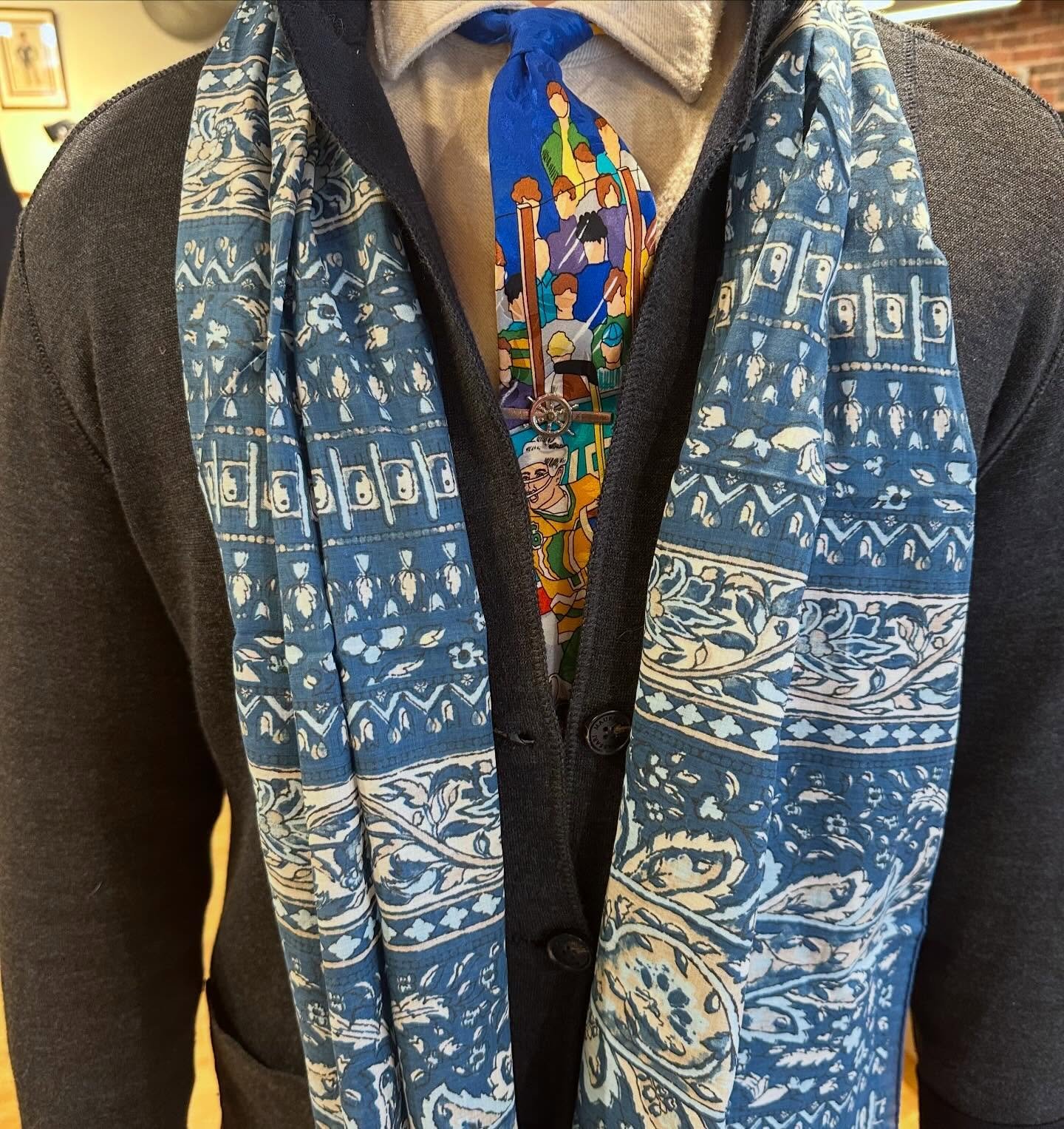 This unconstructed DW sport jacket from EMPIRE features a tonal blue and tan windowpane plaid. It is made from LORO PIANA Capolavoro Tweed cloth – with two buttons, a double vent in the back and a paisley lining. This handsome piece is currently available both in-store and online at DAVIDWOODSTYLESHOP.COM.
